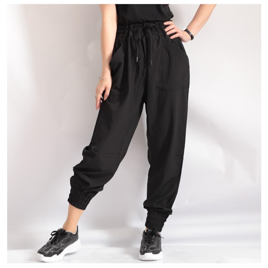 軽い素材とウエストゴムは履き心地良し!メンズライクなジョガーパンツで韓国ファッションにも◎カジュアルな着こなしにぴったりのジョガーパンツ。イージースタイルにはもってこいです。