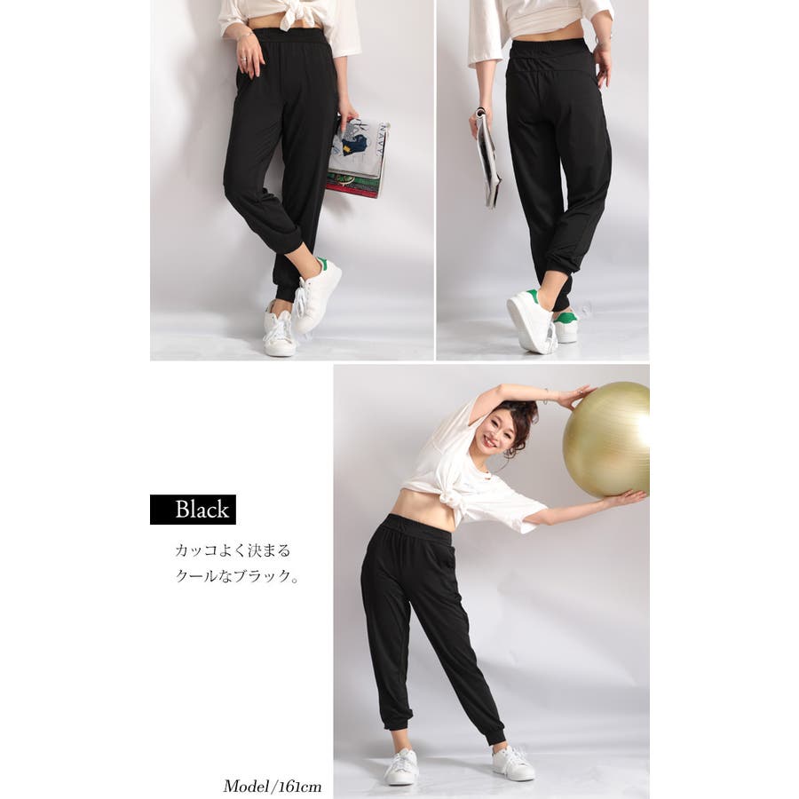 散歩やランニング、ジョギングなどスポーツスタイルにも使いやすいのでヨガやジム、フィットネスでも活躍してくれます。もちろんお部屋でのリラックスウェアとしても◎。ウエスト・裾はゴム仕様でトレンドライクなシルエットに☆