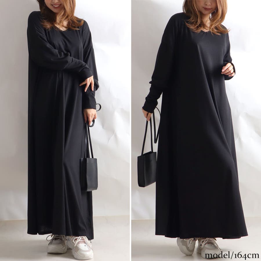 エレガントなルックが完成するカットソーマキシ丈ワンピースです。
