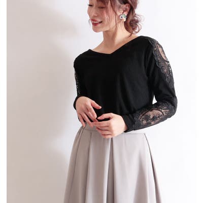人気のレース使いリブタートルトップスにVネックが登場!シースルーのレーシーなお袖がポイントで、女性らしくエレガントな装いに仕上がります。