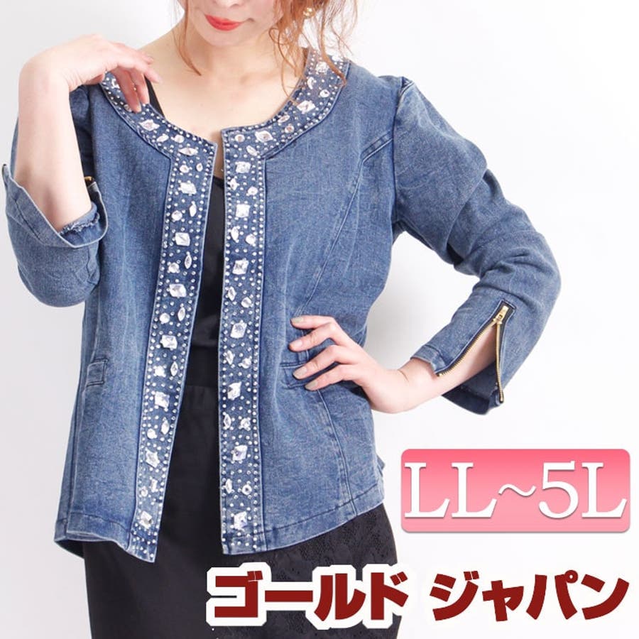大人上品に♪ビジュー付きストレッチデニムジャケット 大きいサイズ レディース