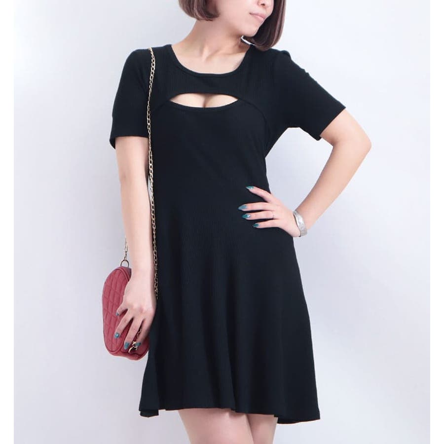 セクシーな谷間を演出してくれる!胸元カットのリブカットソー半袖チュニックです。