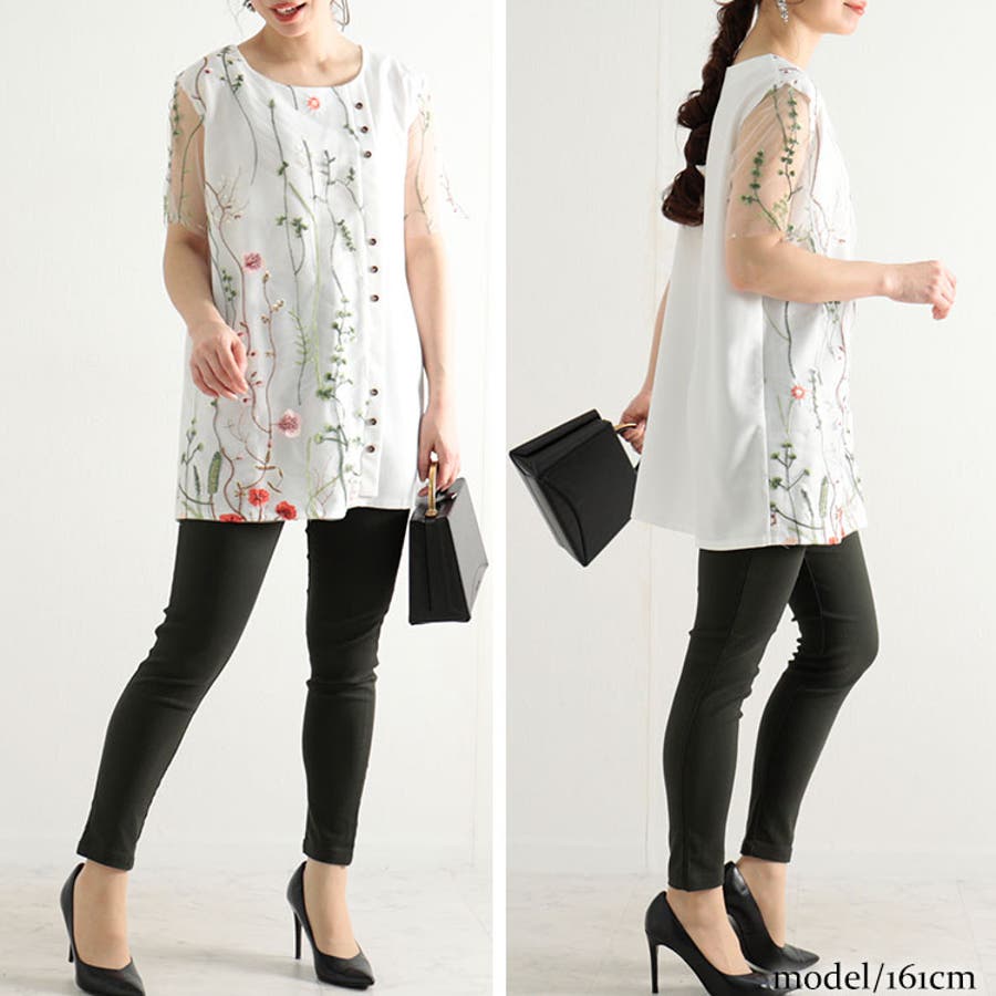鮮やかな花刺繍とシアーなチュールレースが特徴の爽やかな花刺繍チュールレースブラウスです。