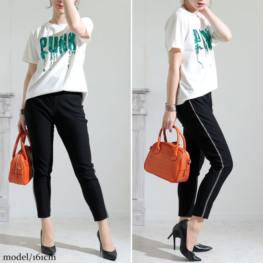 着回し抜群なハイパーストレッチビジューラインスキニーパンツです。