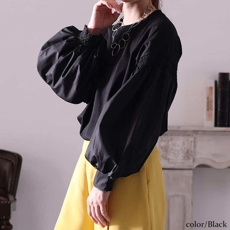 袖口はシャーリングゴムになっているのでブラウジングしやすく、張りのあるブラウス生地なので綺麗なボリュームある袖になってかわいいです。