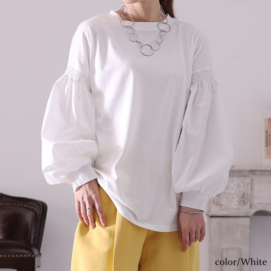 異素材切り替えパフカットソーの登場です。