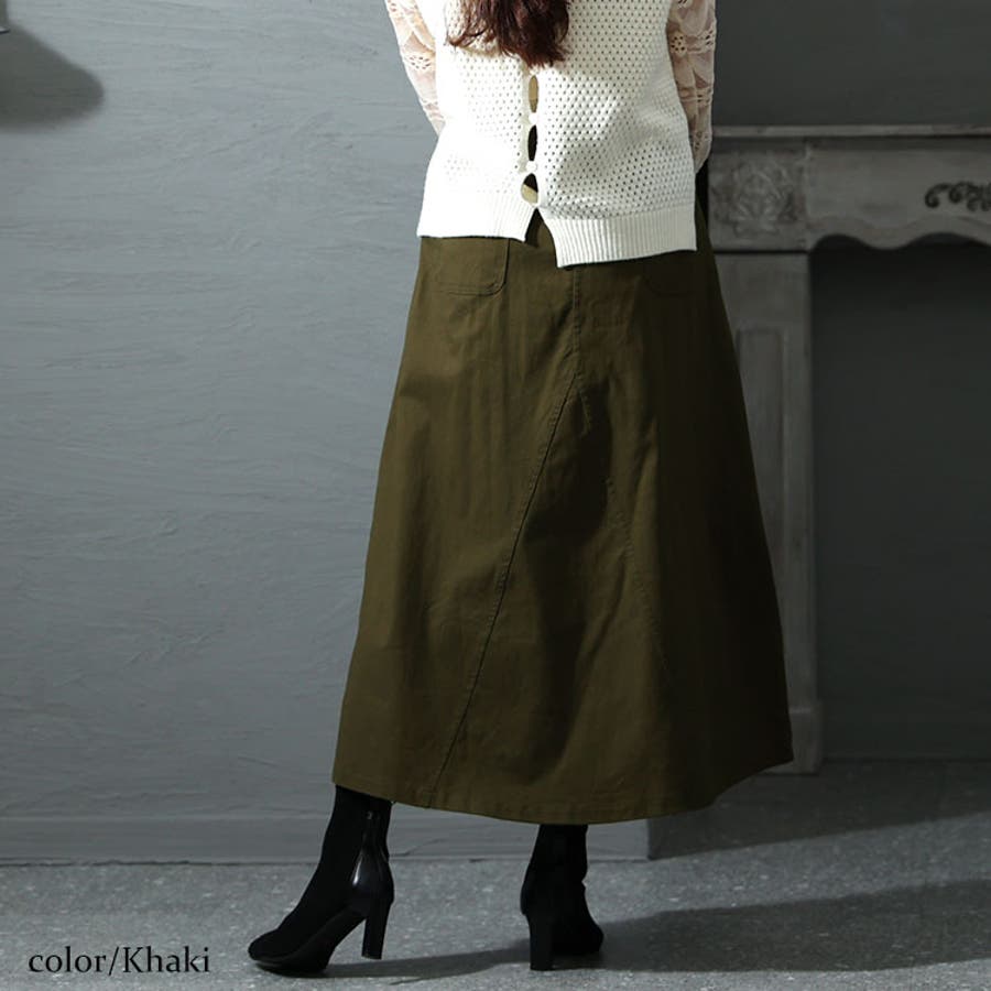 体型カバーミリタリーマキシ丈スカート