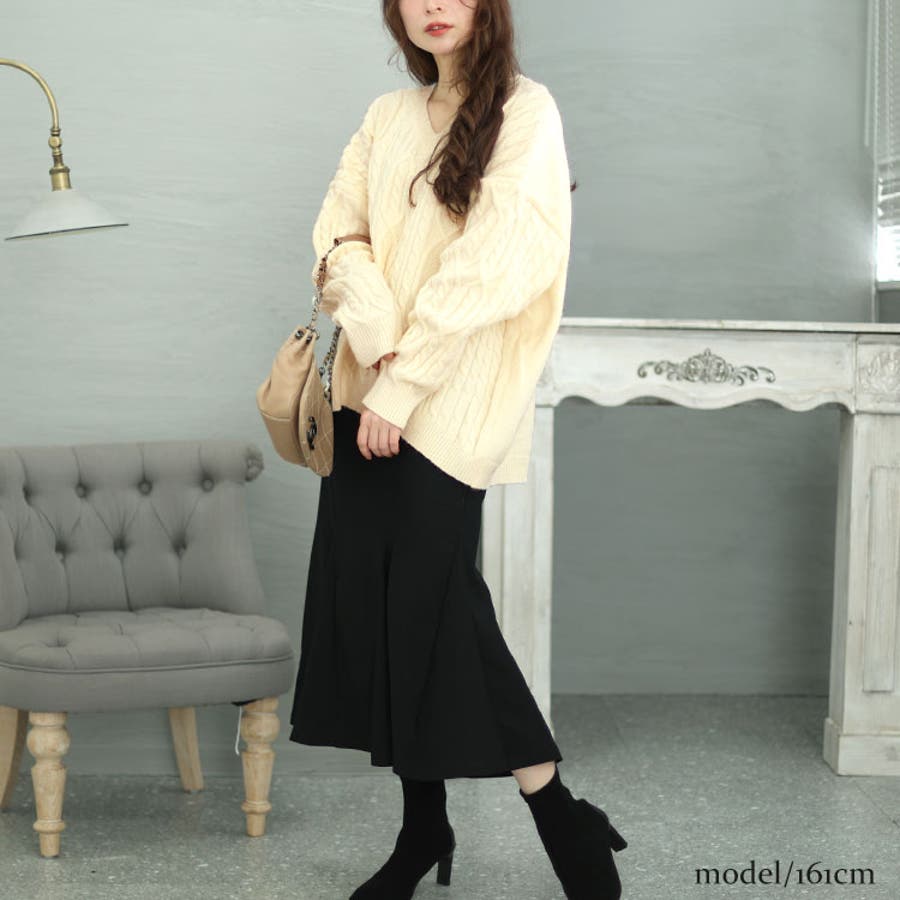 ゆったりシルエットのニットとマーメイドスカートで抜け感を演出できるセットアイテムの登場です。