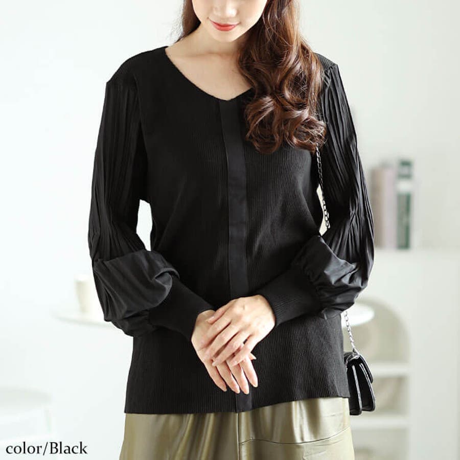 プリーツボリュームスリーブプルオーバー