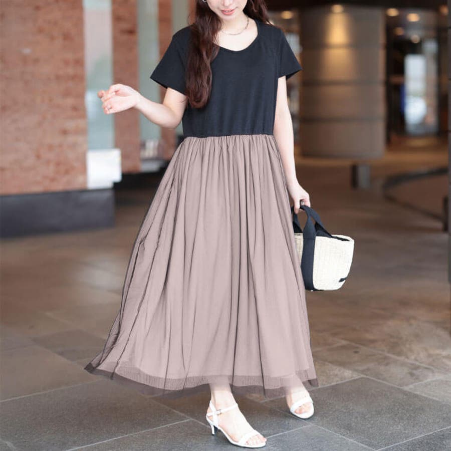 時短でお洒落が完成する、配色チュールドッキングワンピース。