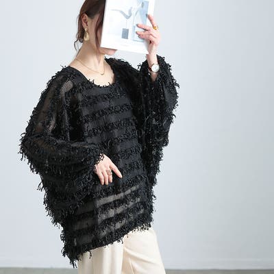 フリンジ+ボーダー柄が表情を明るくするドルマントップスです。