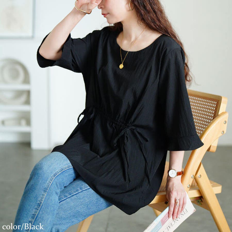 ラウンドネックフロントドロストチュニック