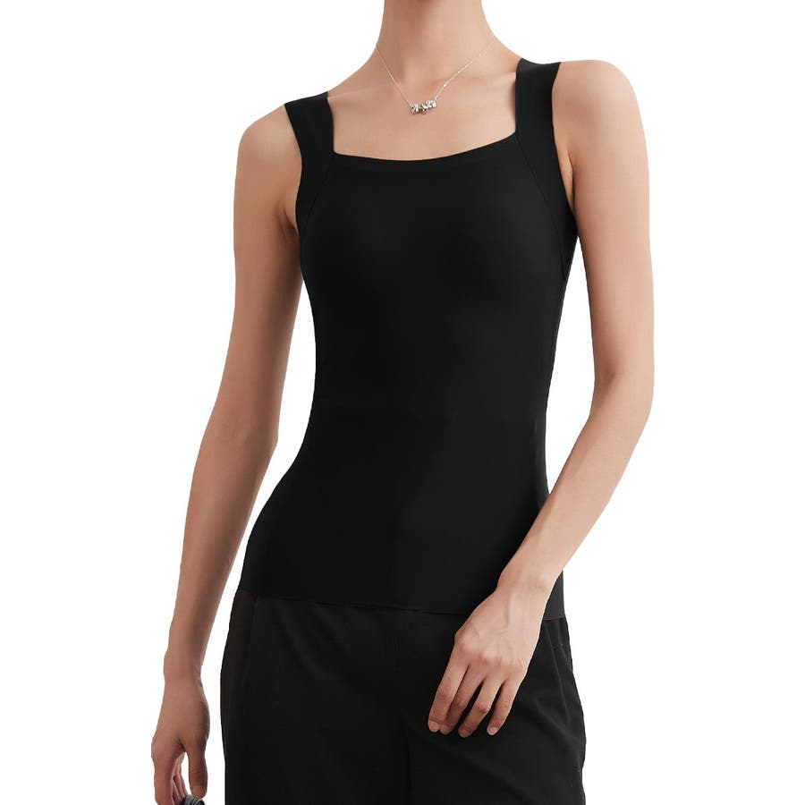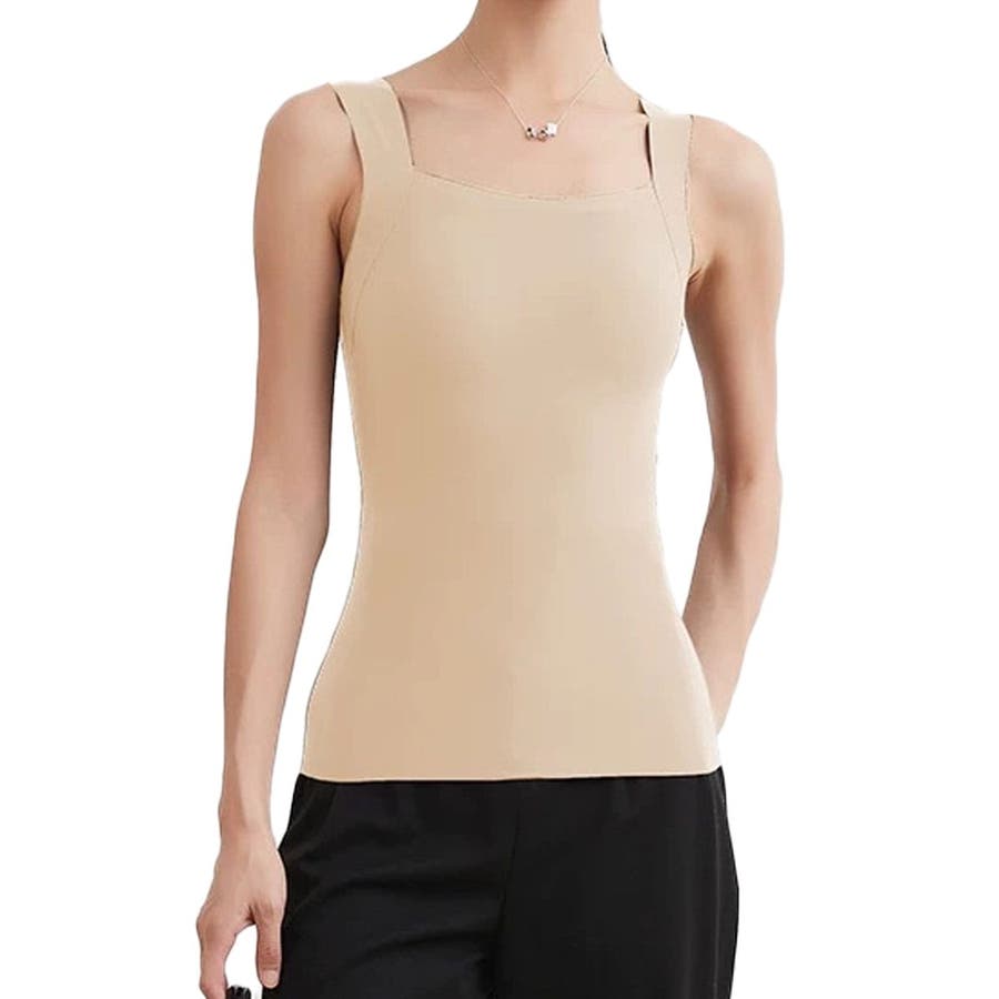 ブラジャーとインナーが一枚で完結する、カップ付きシームレスタンクトップ。