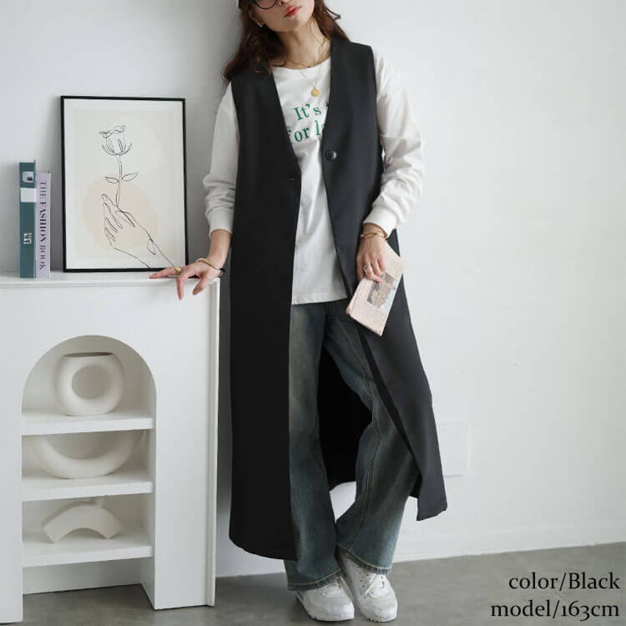 コーデにプラスするだけでこなれる深Vネックロングジレが登場☆