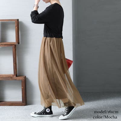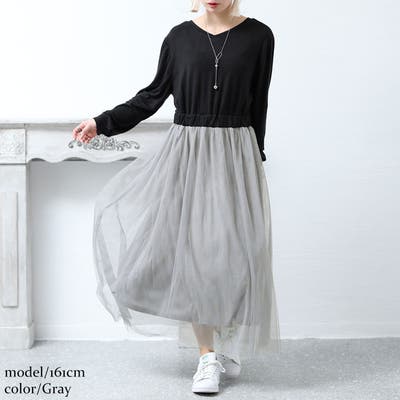 チュールスカートと異素材トップスのドッキングワンピースの登場です。