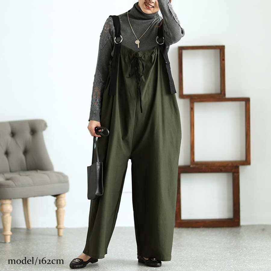 胸元ギャザーワイドサロペット