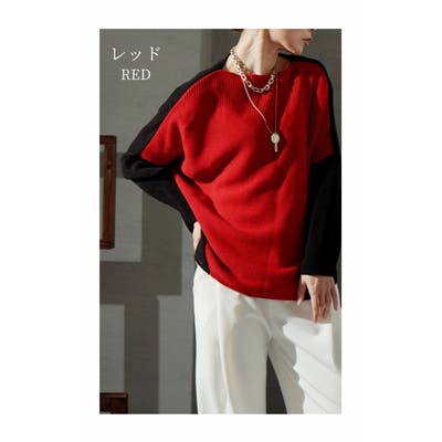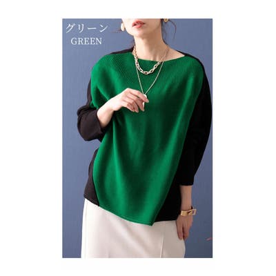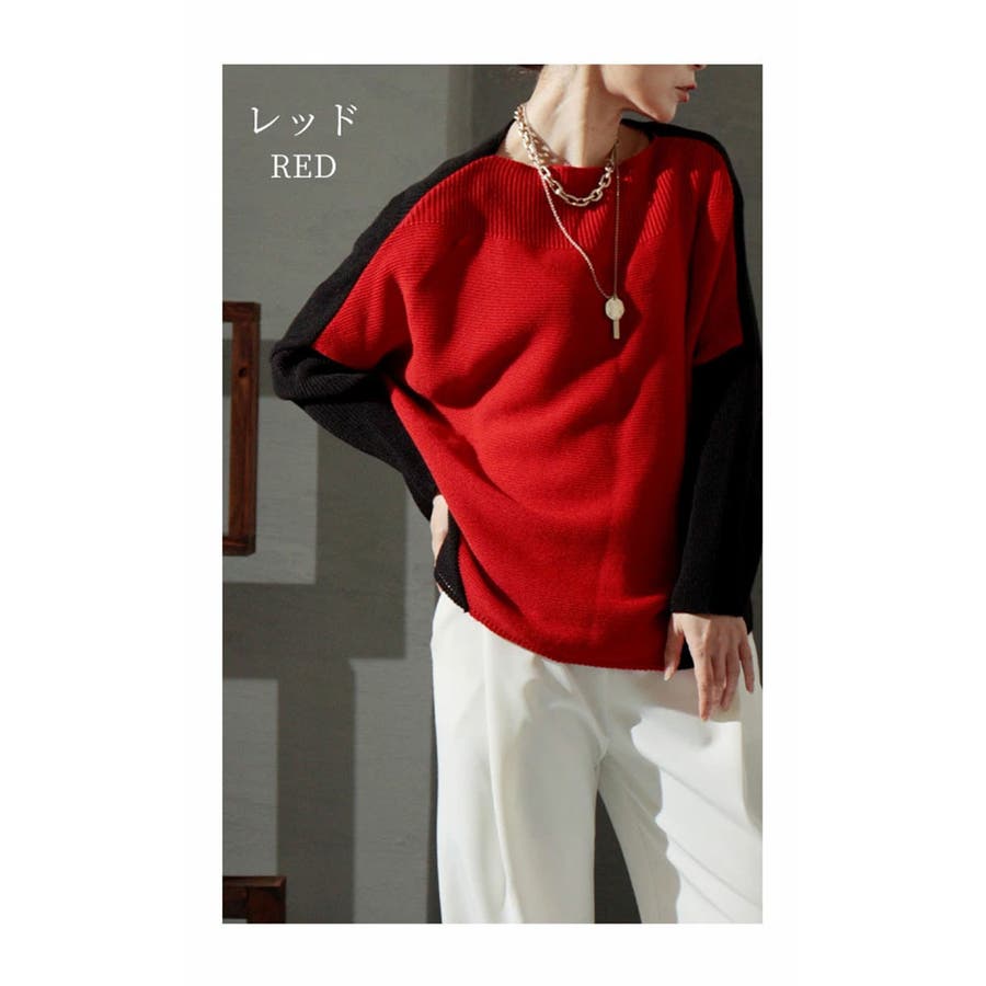 着ぶくれ感ゼロ☆日本製長袖配色ドルマンニットの登場です。