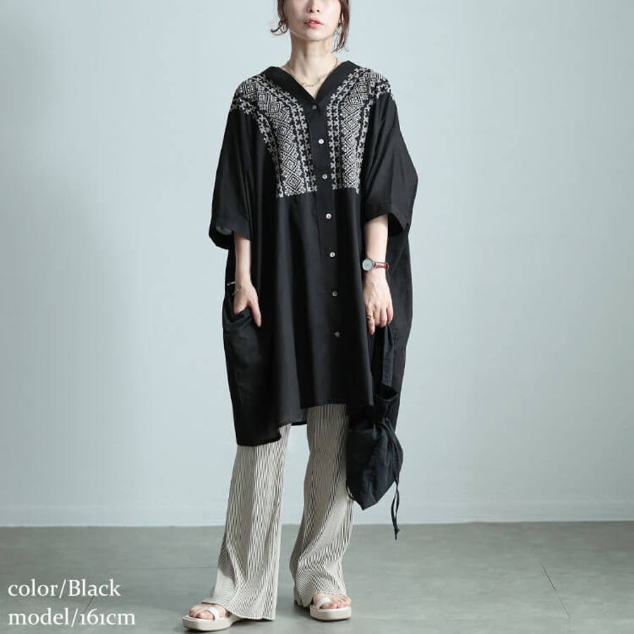 目を惹く刺繍が華やかで大人かわいく着用していただけます。