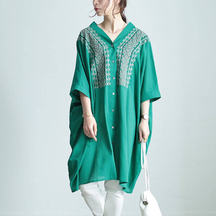 インド綿を使用したおしゃれな刺繍が目を惹くチュニックの登場です。