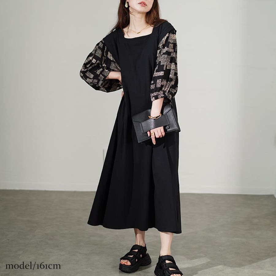袖コンシャスなボリュームスリーブが目を惹く大人ワンピースの登場です。