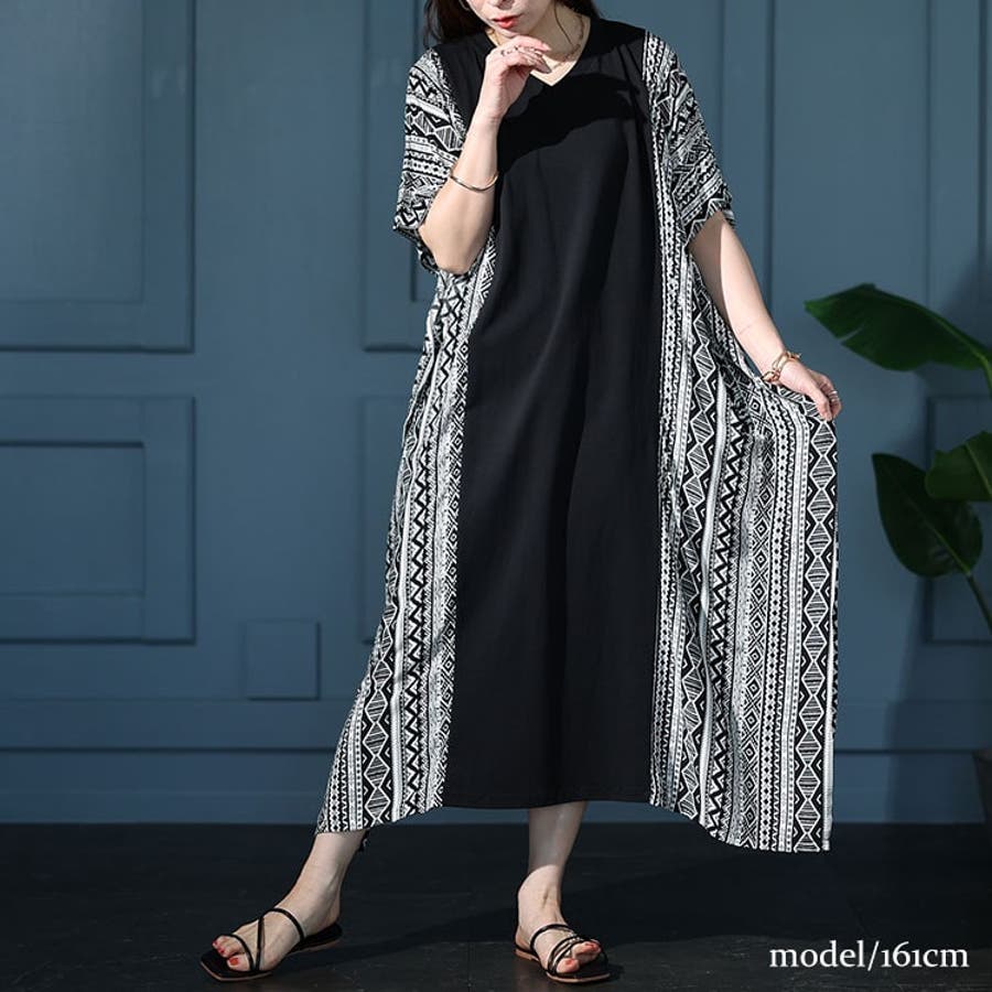 接触冷感エスニック柄切り替えワンピース