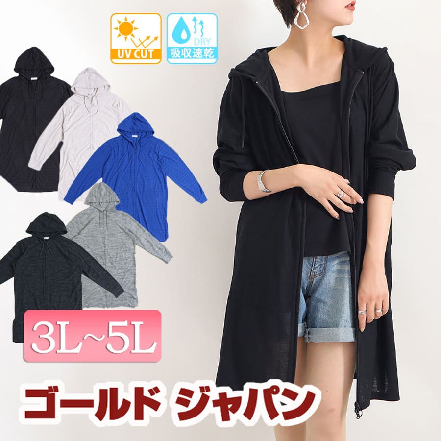 体型カバー抜群♪ UV対策吸湿速乾ジップアップロングパーカー 大きいサイズ