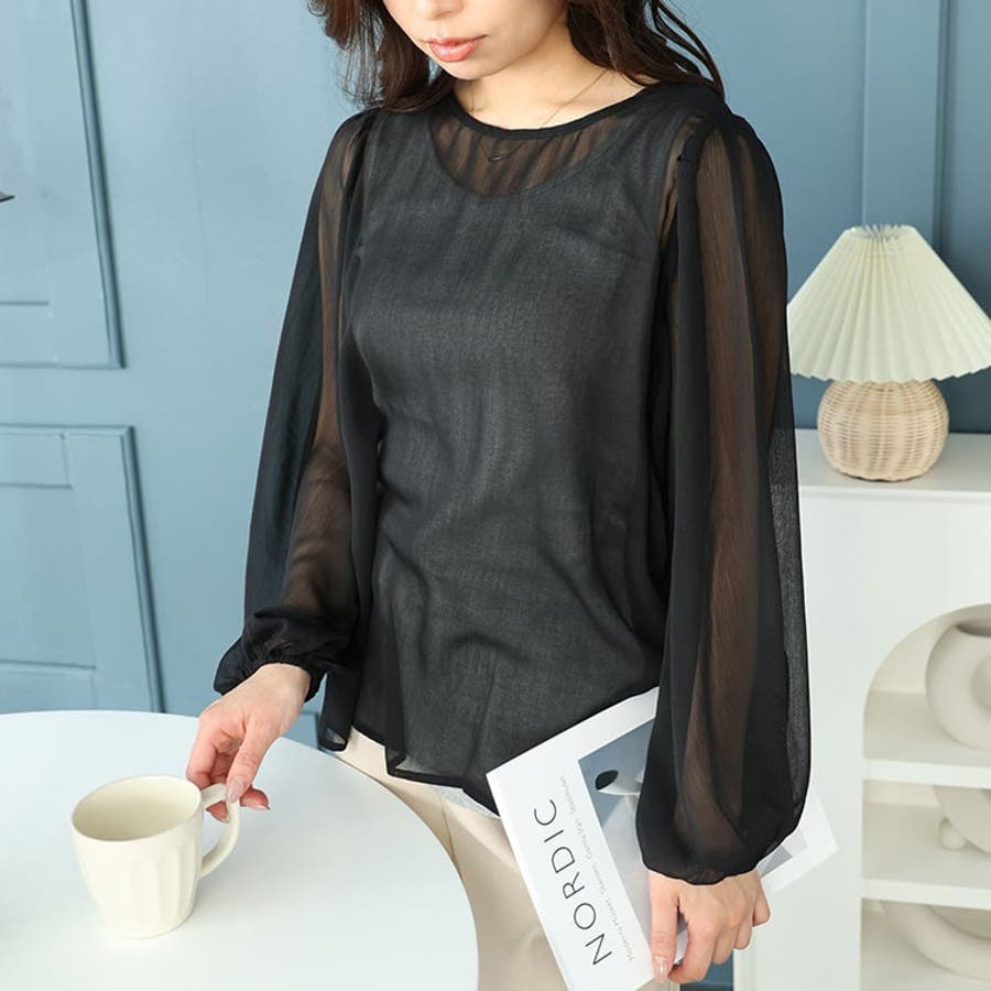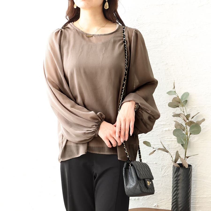 透け感がありながらも開き控えめネックラインのため品があり、合わせるインナー次第で雰囲気が変わり春めくレイヤードスタイルが完成します。