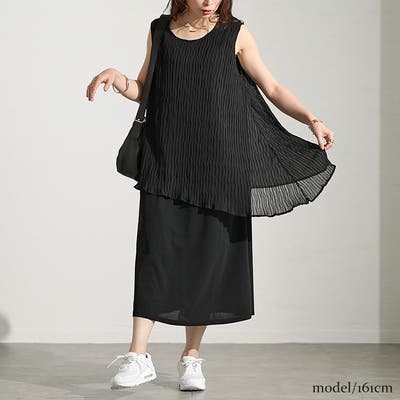 大きいサイズレディース ワンピース プリーツイレギュラーヘムレイヤードノースリー…