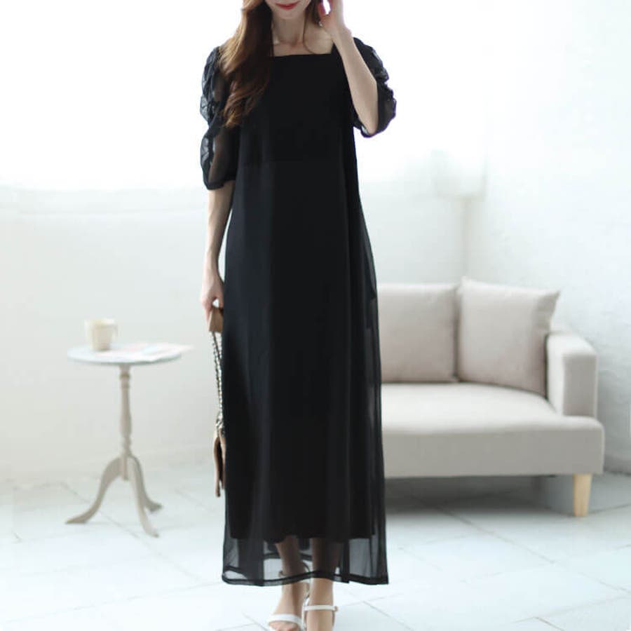 程よく身体にフィットするシルエットで胸下から下は広がり過ぎず体型をカバーしてくれます。