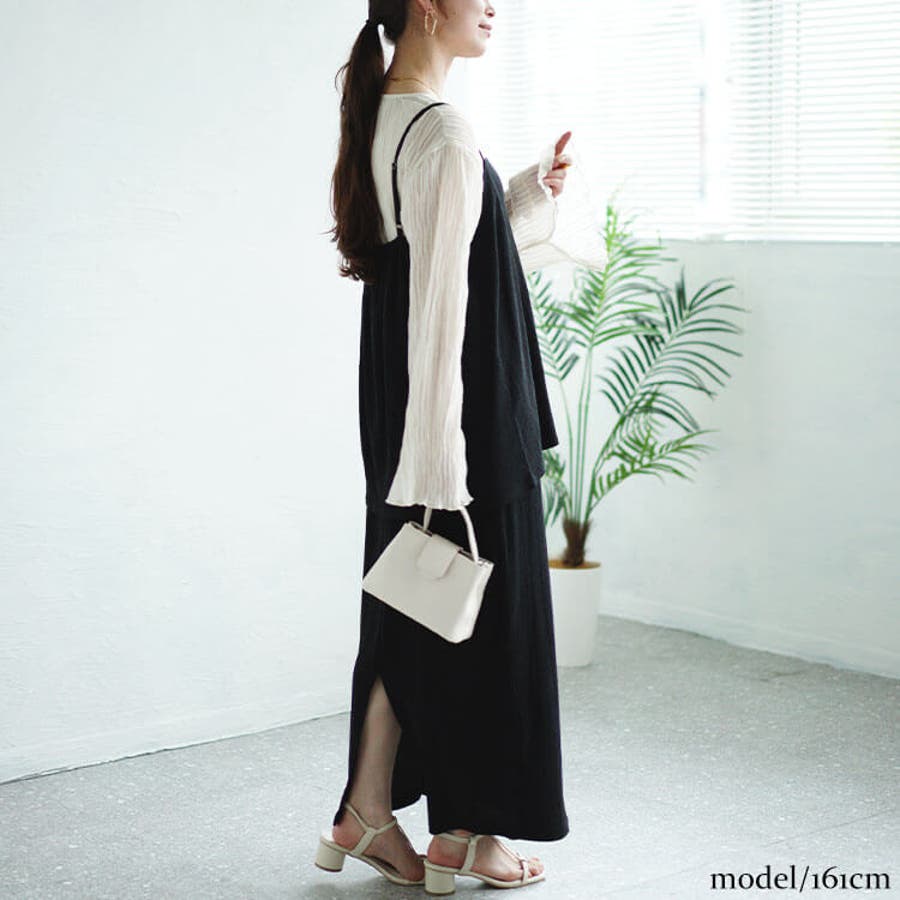 ワッシャー楊柳フレアキャミ