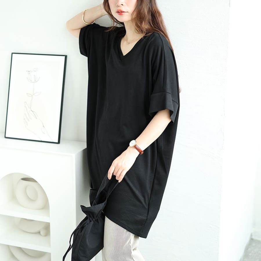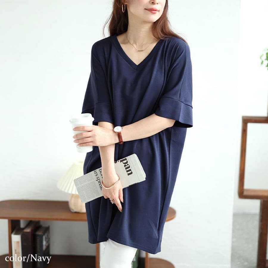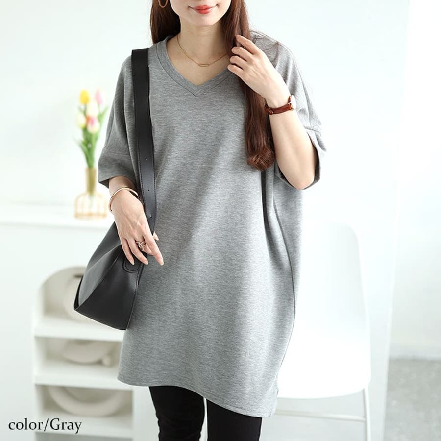 ストレッチスムースVネックドルマンチュニック