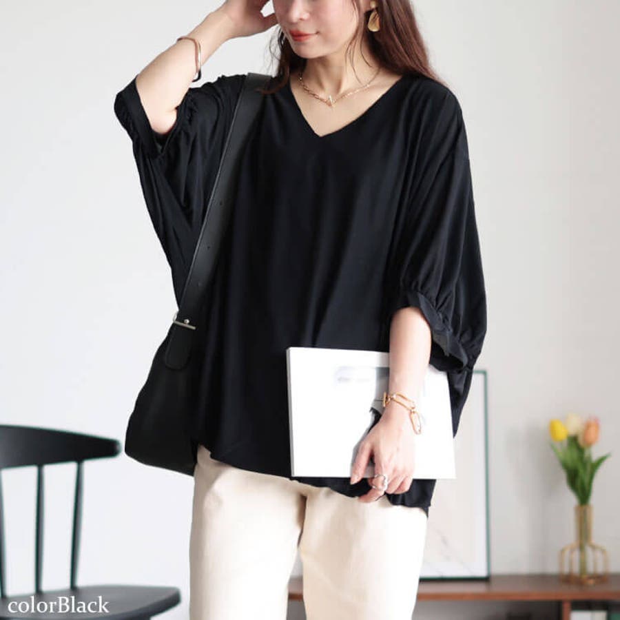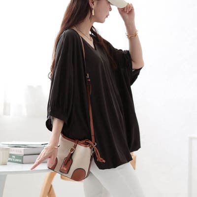 Vネックバルーンドルマンプルオーバー