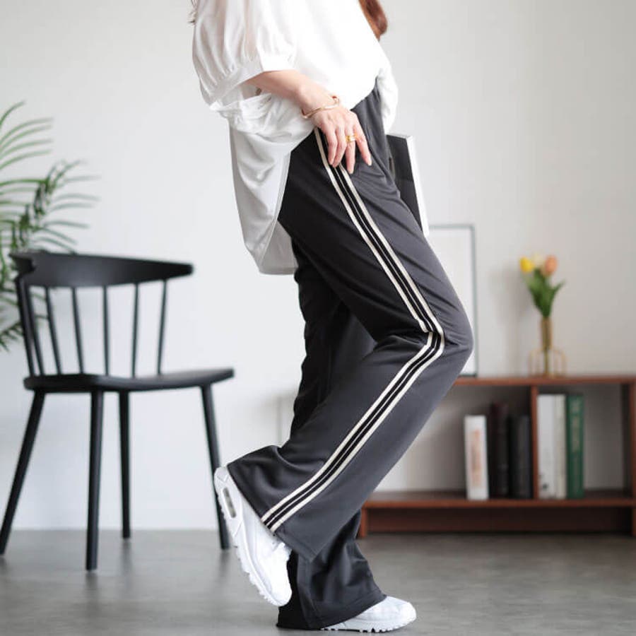 カジュアル感とスポーティー感を演出するラインフレアパンツの登場です。