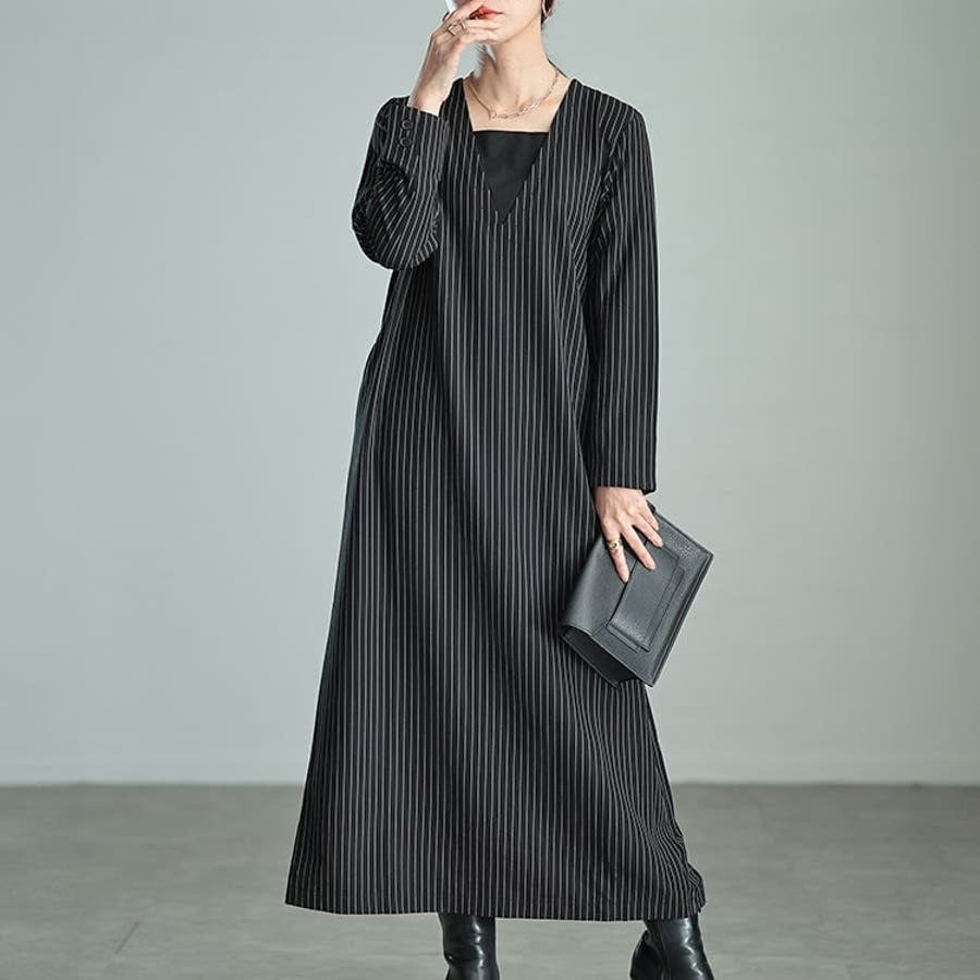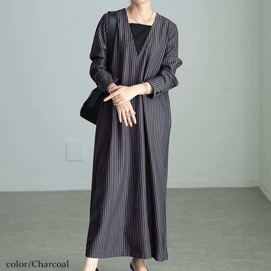 縦ラインを強調するピンストライプ柄で抜群のスッキリ見え♪