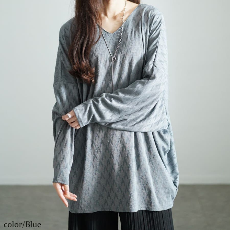 三角ジャガードVネックドルマンプルオーバー