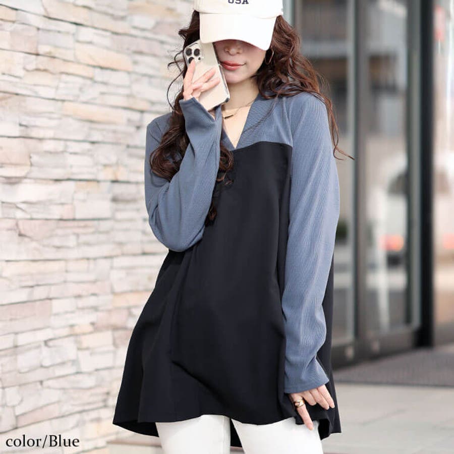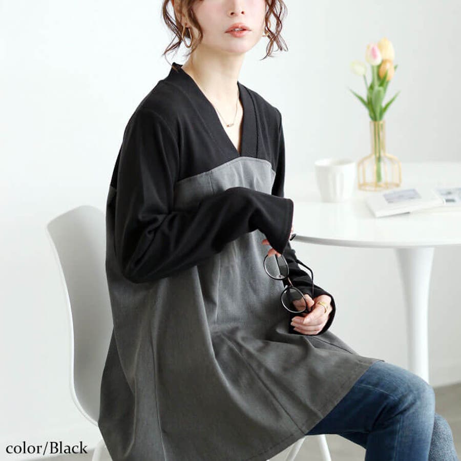 大きいサイズレディース チュニック ビスチェドッキングVネックチュニック