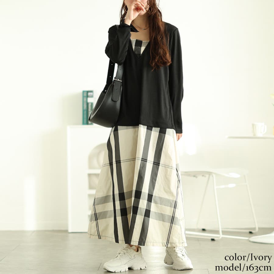 フェイクレイヤードチェック柄ワンピース