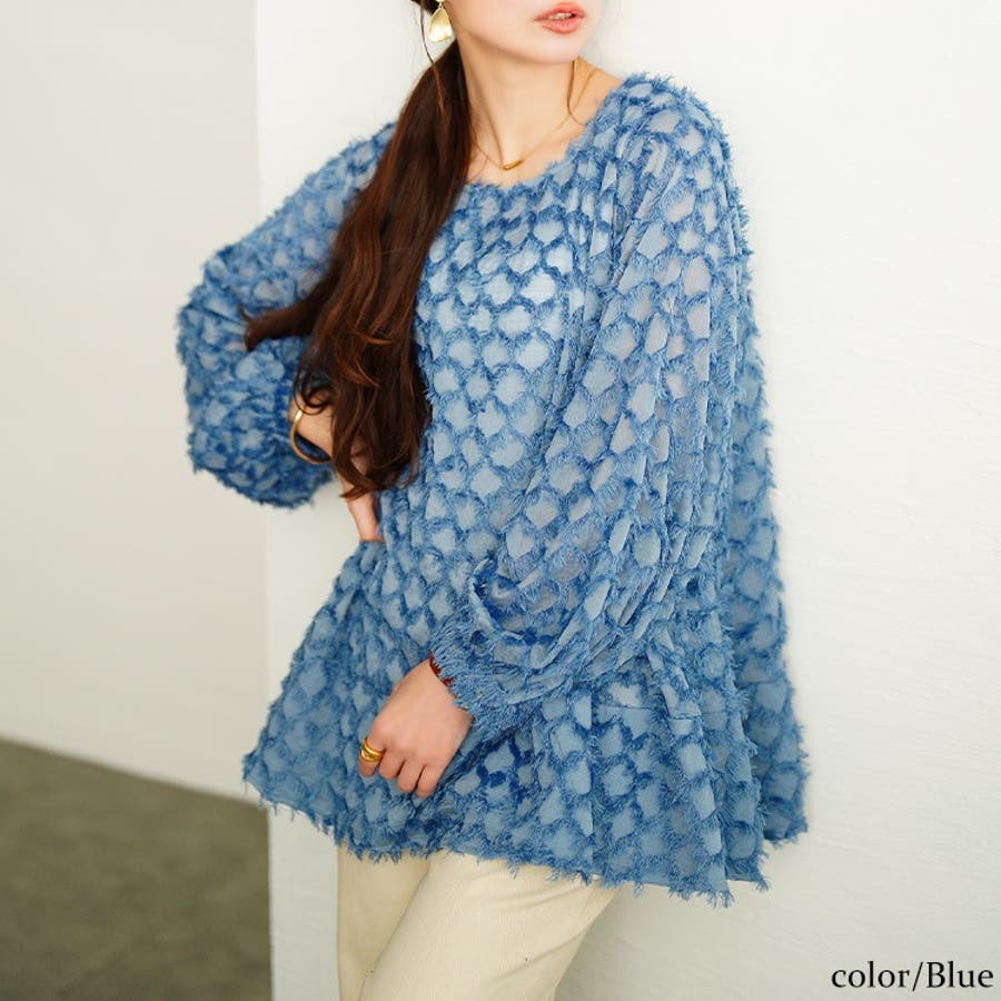 柔らかなフリンジが躍るトレンドスタイルが決まる着映え力の高いトップスは、シフォンの生地に毛足の短めなフリンジジャガードが重なり、トレンド感と高見え効果に。ふんわりとボリューム感のあるスリーブが、レディなスタイリングに仕上げます。ふわっと広がるフレアシルエットで、柔らかな印象をプラスし、着映え力アップに。
