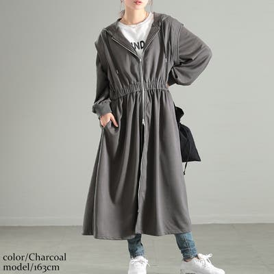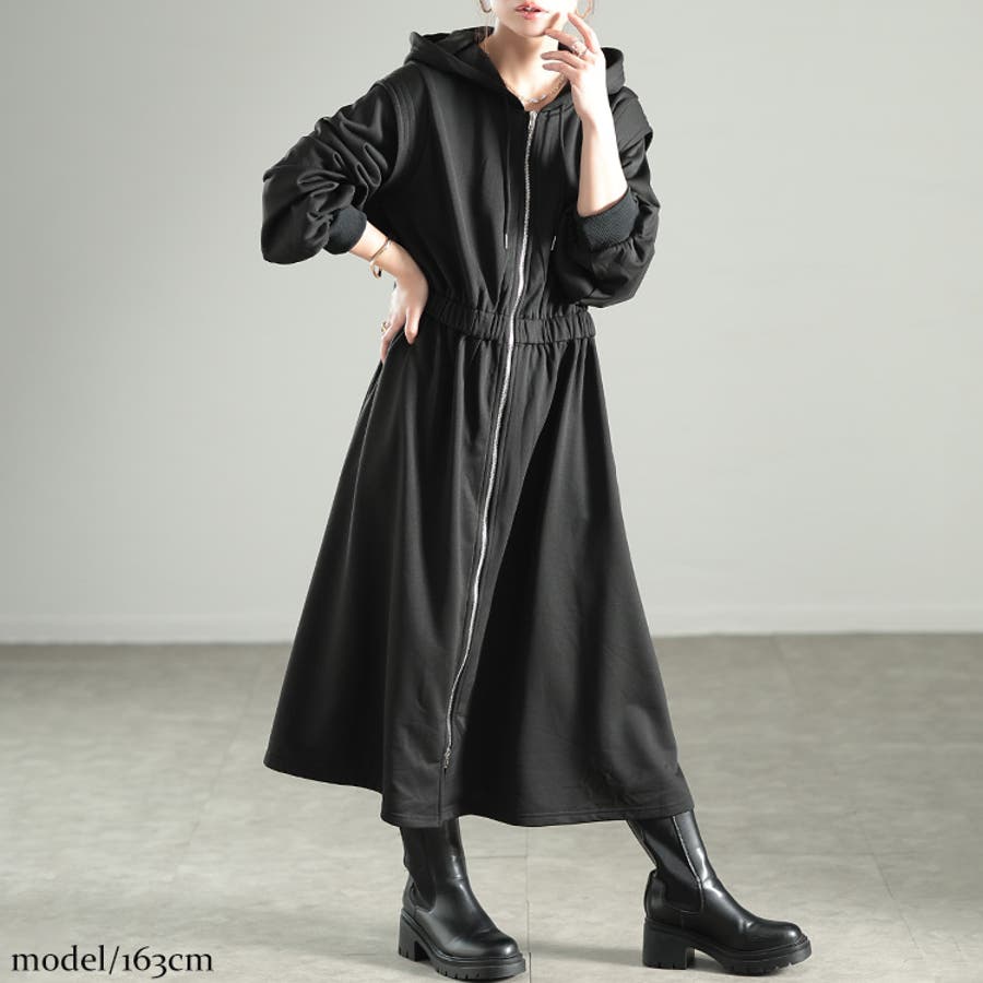 ウエストギャザーZIPパーカーワンピース