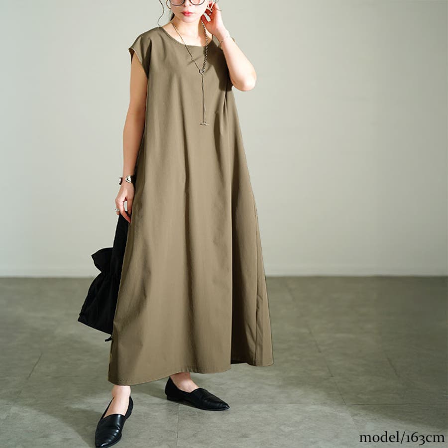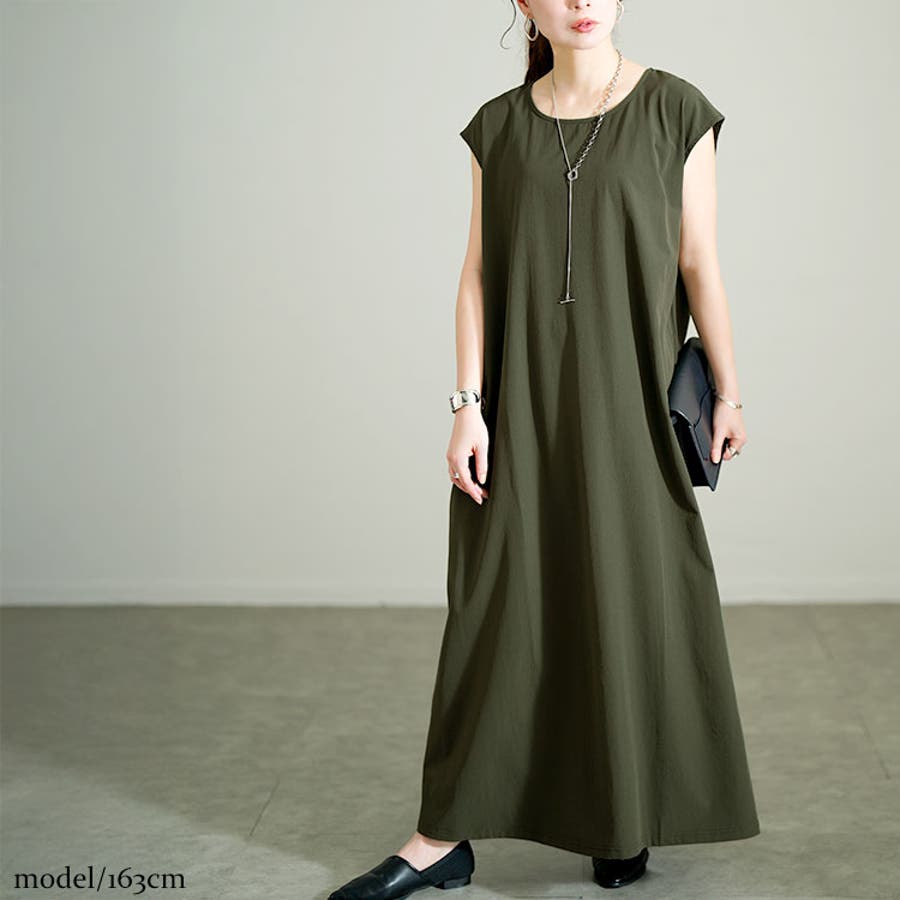 歩くたびにふんわりと広がるシルエットが美しいマキシ丈ワンピースです。