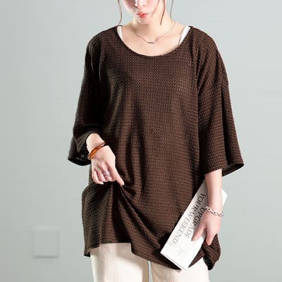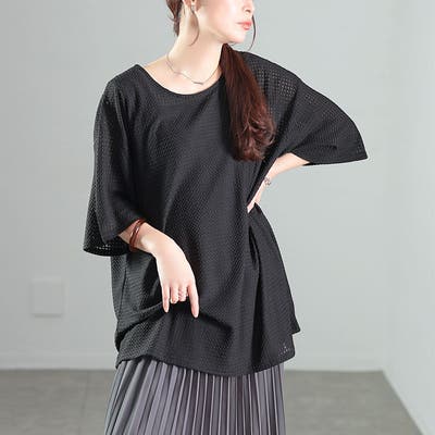 ゆったりとしたオーバーサイズで、気になる二の腕やお腹周りをしっかりカバー。