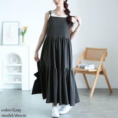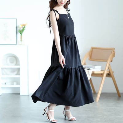 肩リボンティアードキャミワンピース