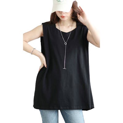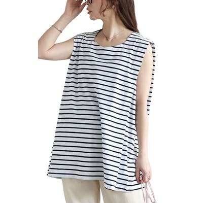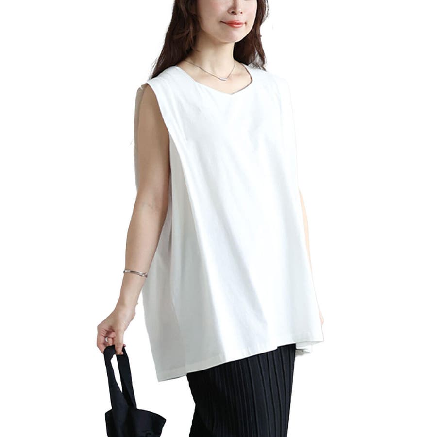着るだけで肩幅を華奢見せタックショルダーノースリーブチュニック