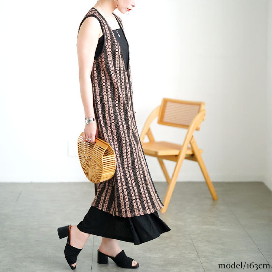 クロッシェ編みツートンレースロングジレ