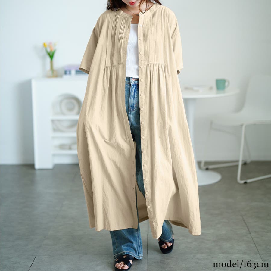 ピンタックコットンシャツワンピース
