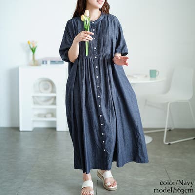 胸元のピンタックデザインが目を惹き、ほんのりガーリッシュな印象が若見えさせるワンピース。バンドカラーでお顔周りもすっきり見え、シャツタイプだから羽織りとしても活躍します。ネイビーは霜降り状の風合いのシャンブレー、アイボリーは軽やかでさらりとした綿ローン生地で仕立てられ、どちらも綿100%で快適な着心地。