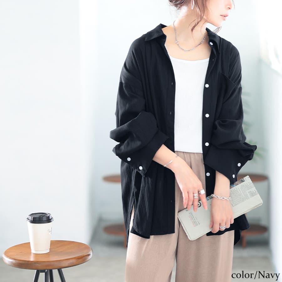 ワッシャー感のある生地で仕立てられた、ゆったりとしたシルエットのシャツは、ボリューム感のあるカフスとワイドなスリーブがデザインのポイント◎一枚羽織るだけで、こなれ感が漂うラフさが、大人女性のスタイリングにもぴったり。