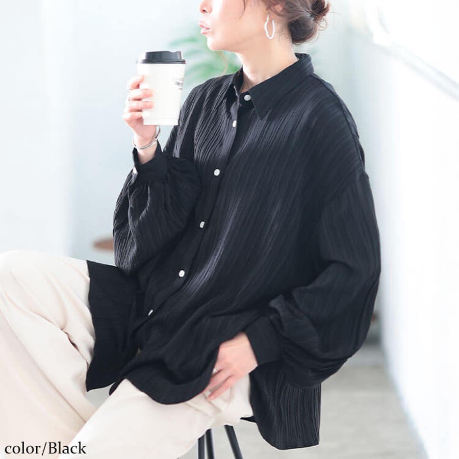 楊柳風ジャガードボリュームスリーブシャツ
