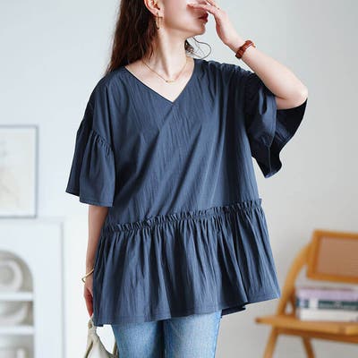 接触冷感Vネックフリルペプラムチュニックの登場です☆