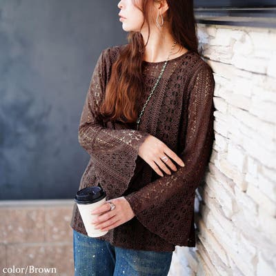 花柄コードレースフレアスリーブプルオーバー
